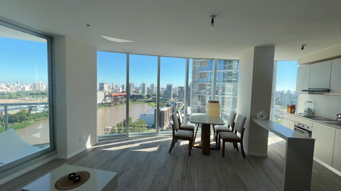 Ubicado en el piso 15, este departamento te regala una vista increíble que combina ciudad y río, ideal para disfrutar cada atardecer.