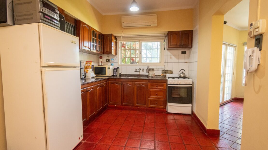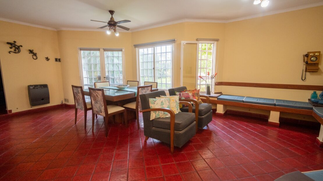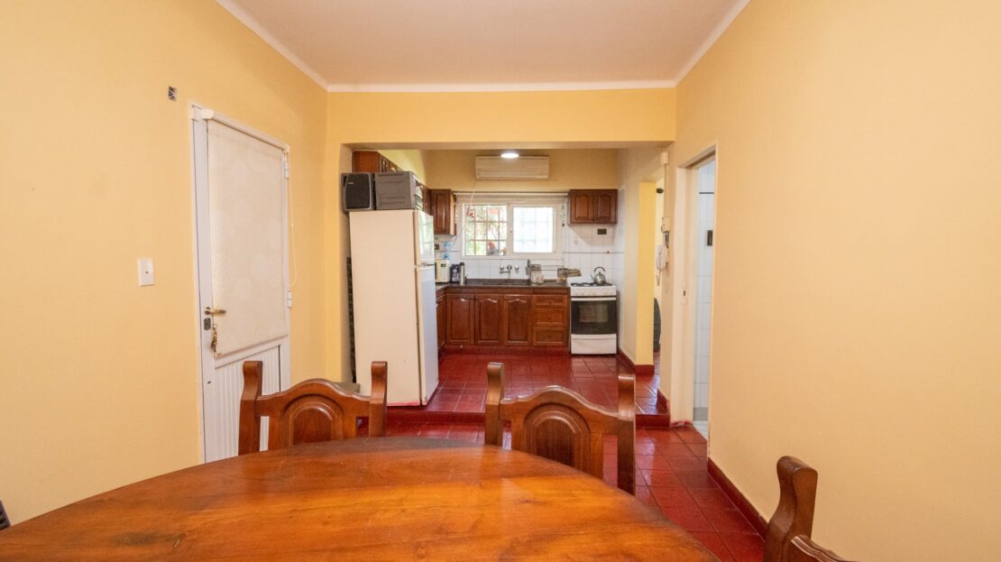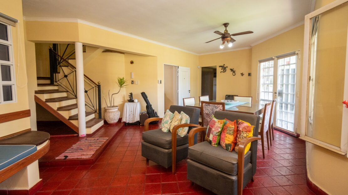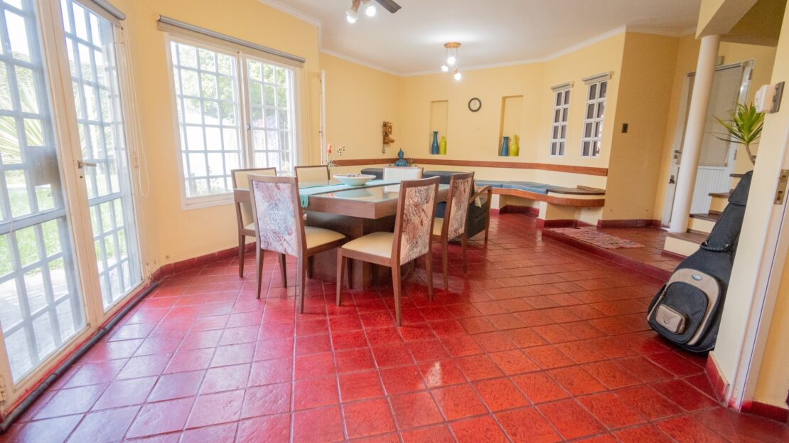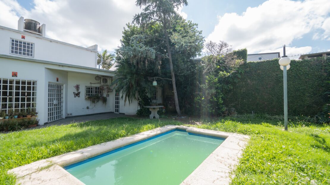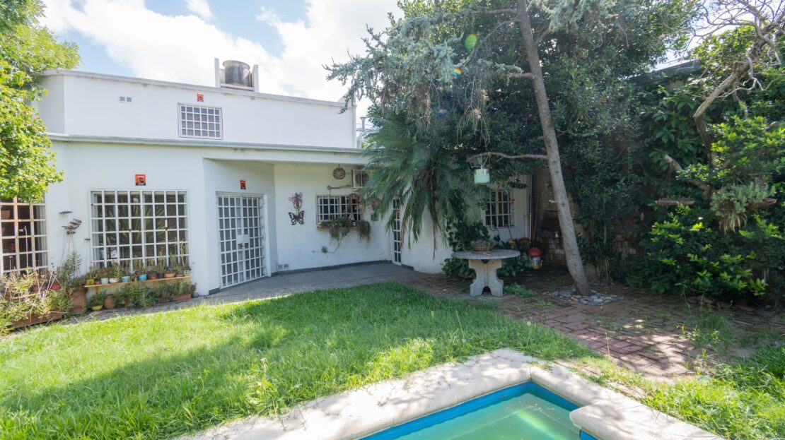 PLANTA BAJA: Sala de estar/comedor principal, cocina/comedor diario, baño, local comercial ó estudio con baño privado (acceso por dentro e independiente desde la calle), garaje doble cubierto (portón automatizado con doble control remoto), lavadero, amplio patio verde con sistema de riego electrónico con 16 aspersores y piscina con bomba y filtros.